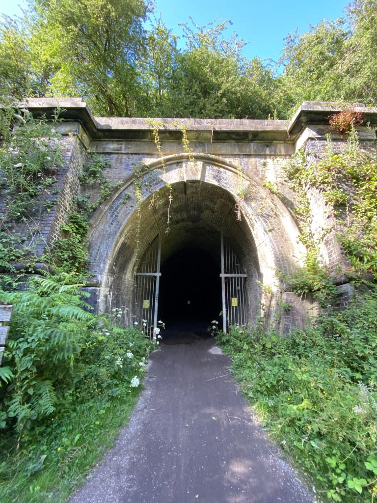 Riding a further couple of miles along the cycle way, I came to the second. I stopped at the entrance. I took a breath and rode in, immediately surrounded by darkness, my eyes raced to catch up with my brain, my hands squeeze the handlebars and my legs turn slowly. Voices at the end, people with small lights approaching and the sound of dripping from the rock above. I press on, bumping up and down with every undulation. Emerging from the end, I prized my hands from my handlebars and let out a sigh of relief.
