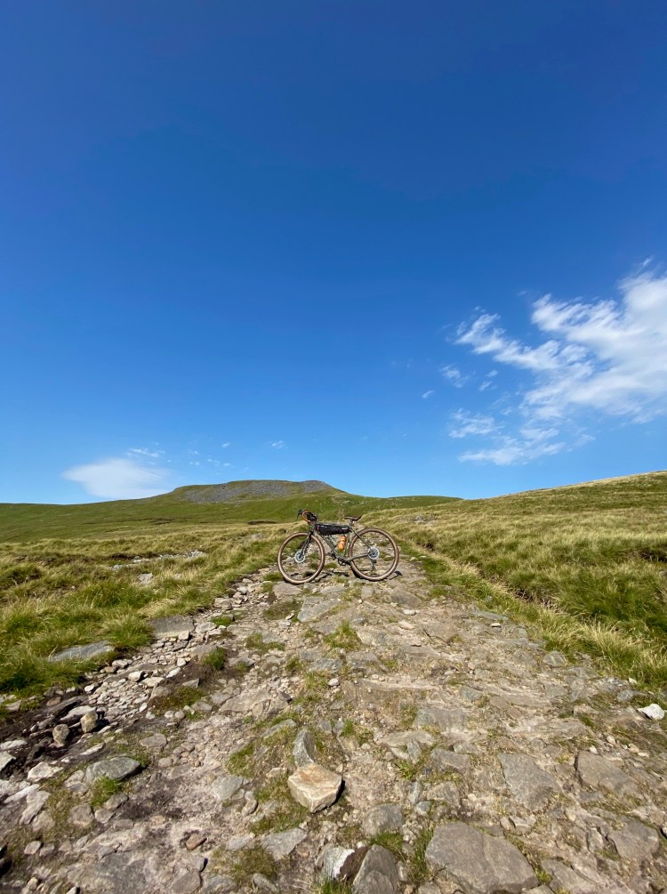 For a mile I followed the trail upwards, leaving the Gill behind and advancing to the Ingleborough summit. The sodden ground, much wetter than before obviously all fed into the waterfall I just left. This was on another level. My tires sank and squelched with every rotation. The ground, grasping at my wheels with every turn. My legs, now burning with the pressure brought on a sudden feeling of disappointment and anger, I wondered what the hell I was doing. In the distance I saw walkers, strolling along with ease up the trail to the summit of Ingleborough on what looked like a gravel path and with a quick zoom out of my Wahoo map, I realised this was the path I had to reach. That was the path my map had previously told me to leave, that was the path I should be on. I had just done a big loop of the area for no reason and spent most of my energy doing so. I laughed it off with gritted teeth, put some music on and pushed and pulled my way to the much needed solid ground.