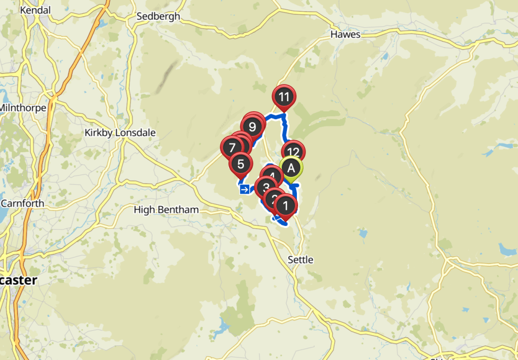 I set about planning my route using Komoot, alongside a map I found noting the trig points in the Yorkshire Dales. I pinpointed a location in which the most trig points fell in the smallest radius possible making the ride achievable, or so I thought. My target, 18-19 trigs in 24 hours. I decided my best option would be to drive to the village in the centre of the trig points and use this as my base. The car I would use would become my own personal re-fuel centre. A very similar plan to the one I used when cycling 311 miles in 24 hours for charity in 2019 and one that worked a treat. (Read about that challenge HERE)
